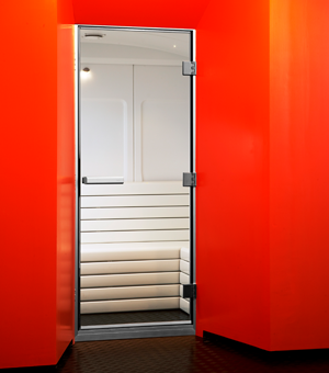 Для большей освещенности сиденья или стены в паровой могут быть заменены на стеклянные секции, что особенно актуально в темных и малоосвещенных помещениях. Помимо этого, каждая кабина может быть оборудована сервисным модулем с полочками для банных принадлежностей и возможностью установки смесителя и душа. Сервисный модуль устанавливается без доплаты вместо любой стены или сиденья, но при этом вам следует учесть, что количество мест в кабине будет уменьшено, поскольку одна стеклянная секция заменяет одно сиденье или стену.