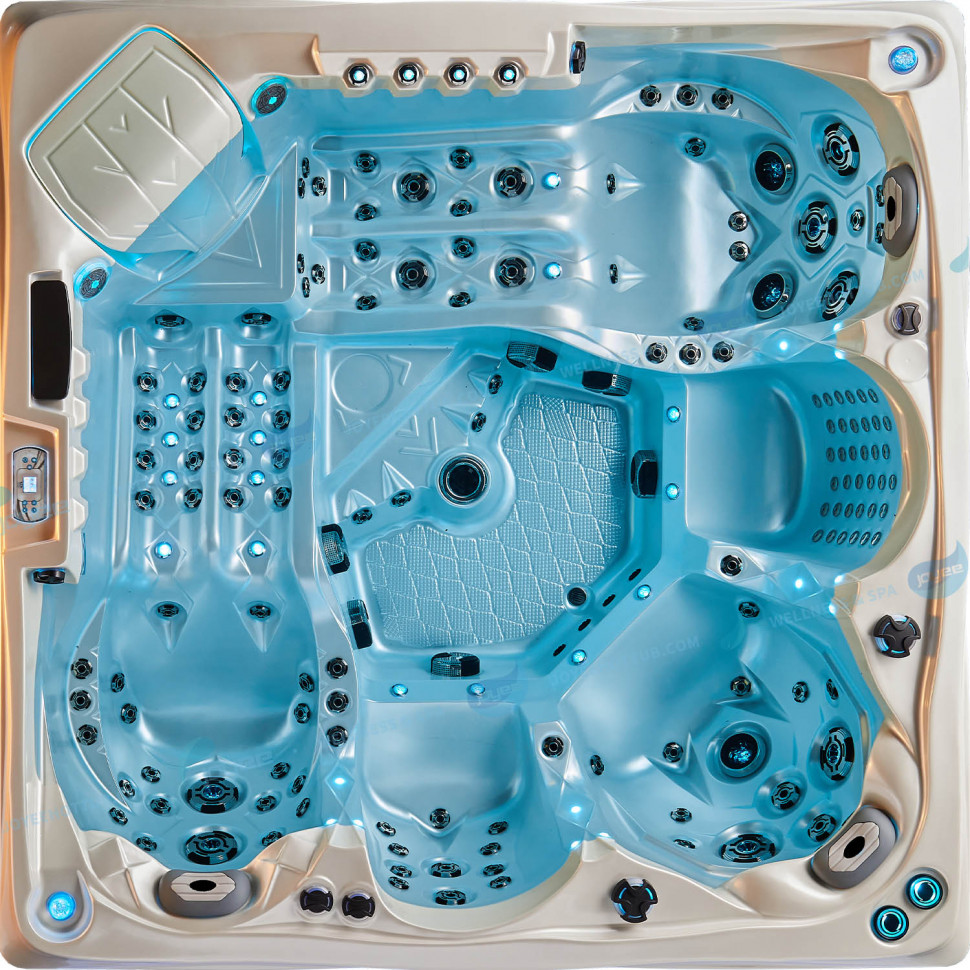 Премиальный гидромассажный комплекс, сочетающий максимальную плотность форсунок с инновационной световой системой для создания непревзойденной атмосферы релакса.