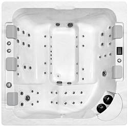 Данная модель гидромассажного спа-бассейна квадратной формы с закругленными углами, что очень удобно.
